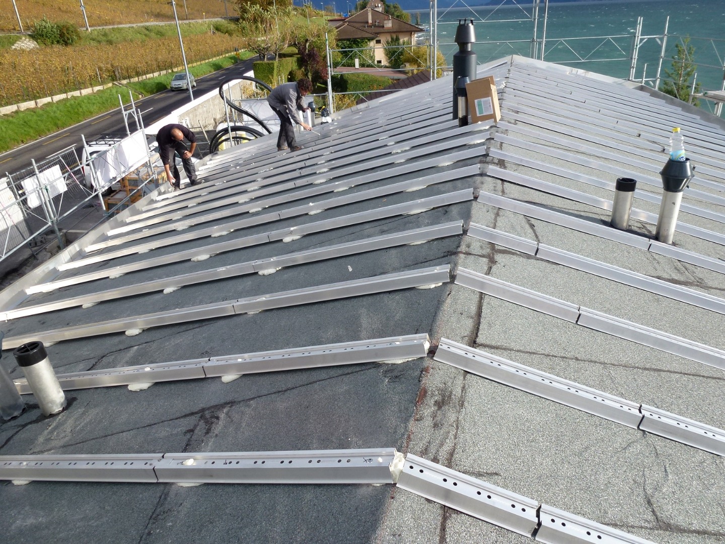 specjalnej taśmy uszczelniającej. Umożliwiło to wyrównanie powierzchni styku co znacznie ułatwiło wykończenie dachu.