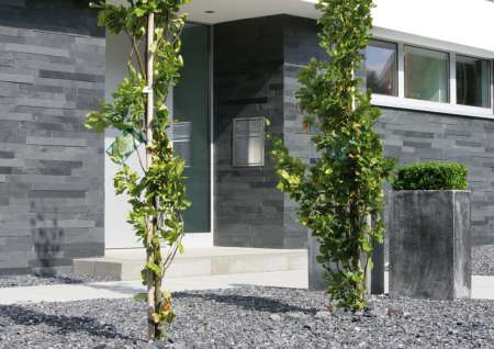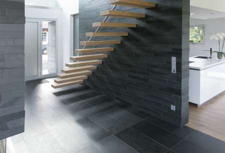 Proste i wyraziste paseczki łupkowe harmonizują się z innymi nowoczesnymi materiałami budowlanymi. Otwarty na wysokie wymagania w zakresie estetyki i trwałości. Idealny dla współczesnego budynku.