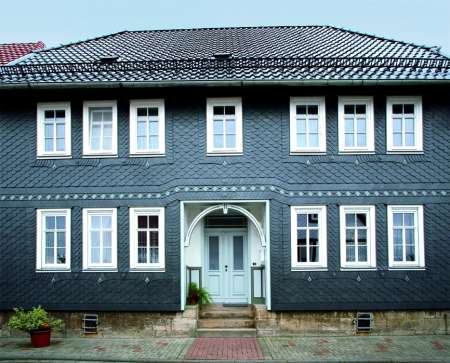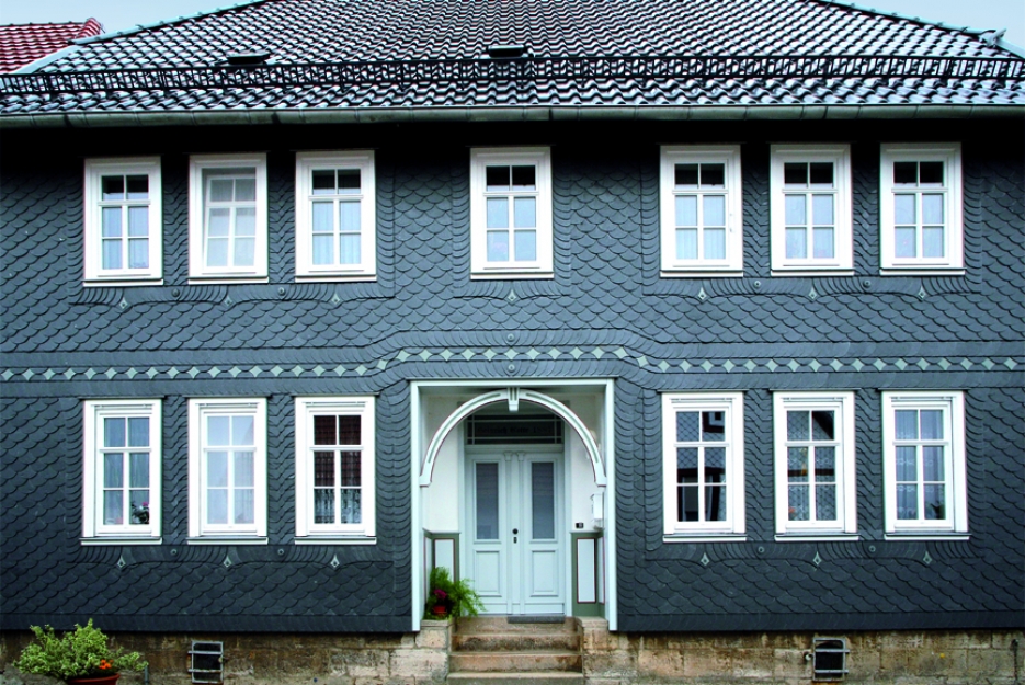Atrakcyjnym sposobem na pokrycie elewacji budynku jest zastosowanie typu tzw. rybiej łuski. Dzięki temu możliwe jest uzyskanie niepowtarzalnego, tradycyjnego stylu. Zapewniamy również możliwości stworzenia pokrycia dopasowanego do indywidualnych zamówień klientów, z wykorzystaniem niestandardowych propozycji.