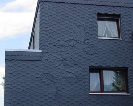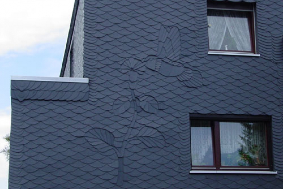 To bardzo dekoracyjne i efektowne rozwiązanie, które może być stosowane w budynkach mieszkalnych, ale także obiektach użyteczności publicznej. Wykorzystać do tego można również elementy stworzone z łupka naturalnego, które są wykonane w różnych wariantach kolorystycznych, dzięki czemu można stworzyć bardzo ciekawe koncepcje architektoniczne. W taki sposób został zrealizowany chociażby projekt w kształcie kwiatu, a także wykorzystania do kompozycji motywów zwierzęcych.